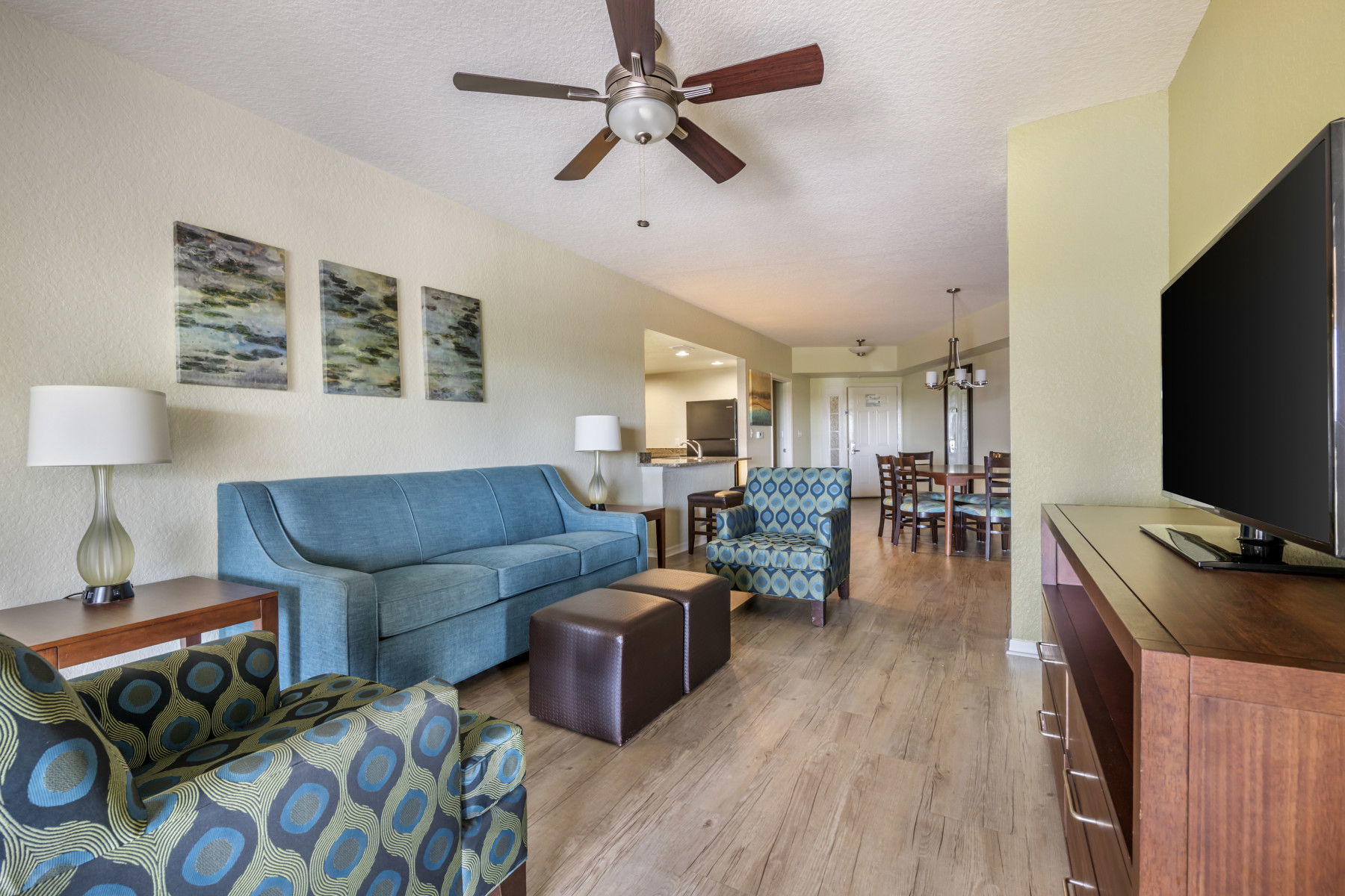 Arriving at the resort, you will be welcomed to the lobby that has been recently updated in a bright, fresh and modern style and greeted by warm, friendly locals who know exactly how to make you feel taken care of. Spacious accommodations include one-, two- and three-bedroom suites appointed with kitchenettes or full kitchens, washer/dryers and private balconies. Additional amenities include: dining, an 18-hole championship golf course, four pools, mini-golf, playground, and families and kids programs.
