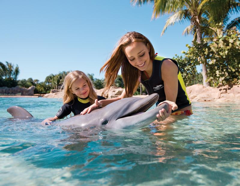 Discovery Cove® in Orlando is an all-inclusive day resort where guests can enjoy a one-of-a-kind opportunity to swim with dolphins, snorkel among thousands of tropical fish and rays, hand-feed exotic birds and encounter playful otters and curious marmosets. Relax and explore rocky lagoons surrounded by lush landscaping, tropical reefs, winding rivers and white, sandy beaches. Freshly prepared meals, snacks and beverages throughout the day and swim gear are included. Guests will experience the most exciting animal encounters the world has to offer in a breathtaking tropical atmosphere.